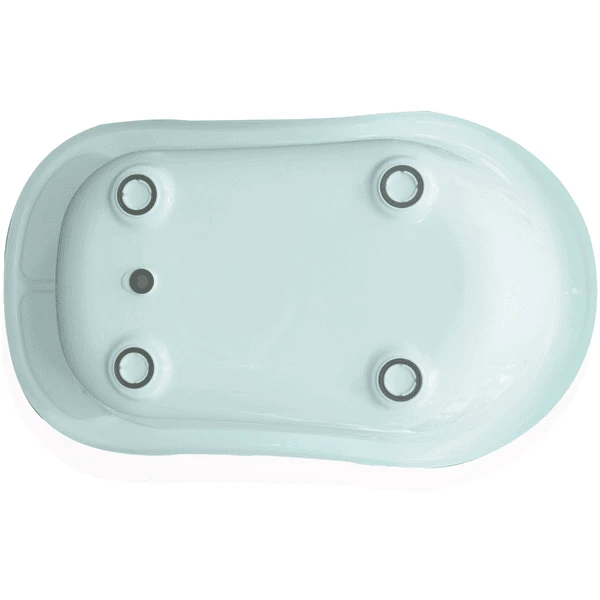 - Twee uitsparingen aan de voet van het badje dienen als opbergvakken voor badspullen