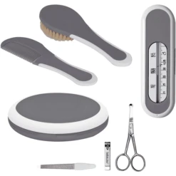 bébé-jou ® biedt een zeer compleet en kwalitatief hoogstaand assortiment verzorgingsproducten. Alleen het beste is goed genoeg voor je baby! De manicureset bestaat uit een nagelschaartje, een nagelpincet en een nagelvijl in een bijpassend etui. De kam met afgeronde tanden en de borstel met natuurlijke borstelharen zijn babyvriendelijk. Perfect voor de gevoelige babyhuid.