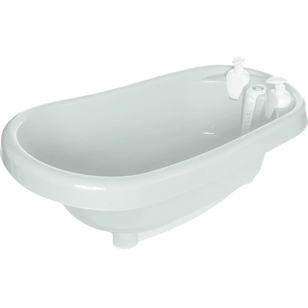 Het thermische bad bébé-jou met het innovatieve ” Click -systeem” zorgt voor extra veiligheid en comfort tijdens het b aden s. Met slechts 2 Click s wordt de badkuip stevig bevestigd aan de bebe-jou badstandaard. De badkuip kan even gemakkelijk worden losgemaakt met een Click aan de onderzijde van de badkuipstandaard. Deze speciale badkuip heeft een geïntegreerde thermometer en 2 dispensers voor shampoo en zeep. De badthermometer is ook een stop. Druk hem omhoog en het water loopt eruit via de bijgeleverde afvoerslang. Bijvoorbeeld, in de bebe-jou luieremmer. Zwaar tillen is niet meer nodig. Al met al een luxueus bad dat alles biedt wat u nodig hebt om u volledig op het b aden van uw kind te concentreren.