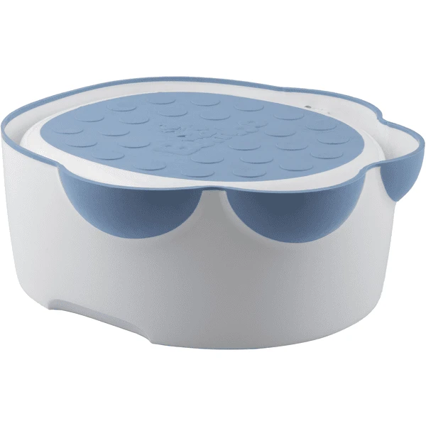 Als u van het potje een opstapje wilt maken, draait u het om en drukt u op de voor- of achterkant van het deksel. U hoort een luide klik als het deksel eraf gaat. De goede pasvorm zorgt ervoor dat het deksel op zijn plaats blijft zitten tijdens het opbergen.
