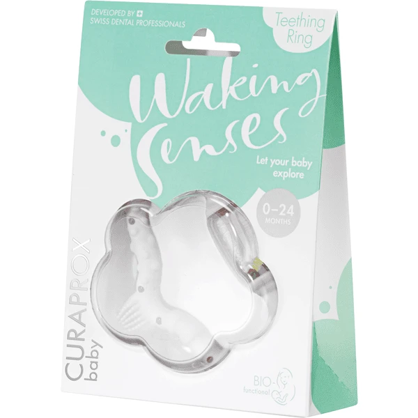 Bijt erin, en de pijn verdwijnt. Je baby heeft geen pijnstillende zalf nodig. Ontwikkeld door Dr. med. dent. Nadja-Marina Kellerhoff, de CURAPROX bijtring voor baby’s is eigenlijk een avonturenspeelplaats – en een leren tandenborstel. Er zijn veel opwindende oppervlakken om te voelen, en de rammelaar rammelt. Voor opvoeders betekent dit: zintuiglijke motoriek. Voor uw kind: avontuur!