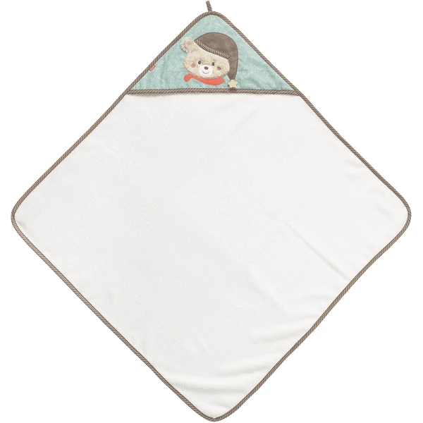 De absorberende babydoek met capuchon en de schattige Bruno berenapplicatie uit de Bruno-collectie wikkelt de baby voorzichtig in en beschermt hem tegen kou en tocht. De pluizige badhanddoek in zacht beige zorgt voor aangenaam knuffelplezier: