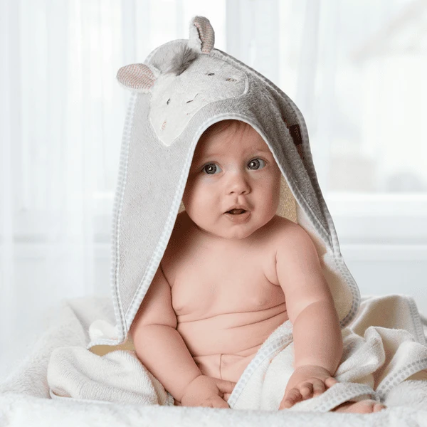 De absorberende babydoek met capuchon en schattige Lama-applicatie uit de Peruaanse collectie wikkelt de baby zachtjes in en beschermt hem tegen kou en tocht. De pluizige badhanddoek in zacht beige zorgt voor aangenaam knuffelplezier: