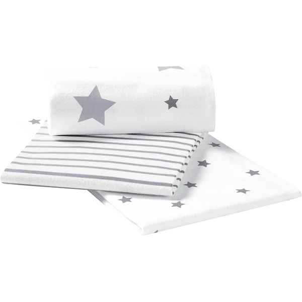 Prachtige katoenen molletondoeken met modern en motiefjes in een 3-pack, die zeer huidvriendelijk, absorberend en zacht zijn.