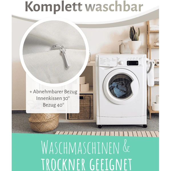 - Hoes wasbaar tot 40°C in zachte wascyclus