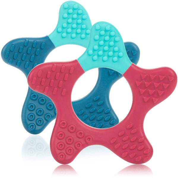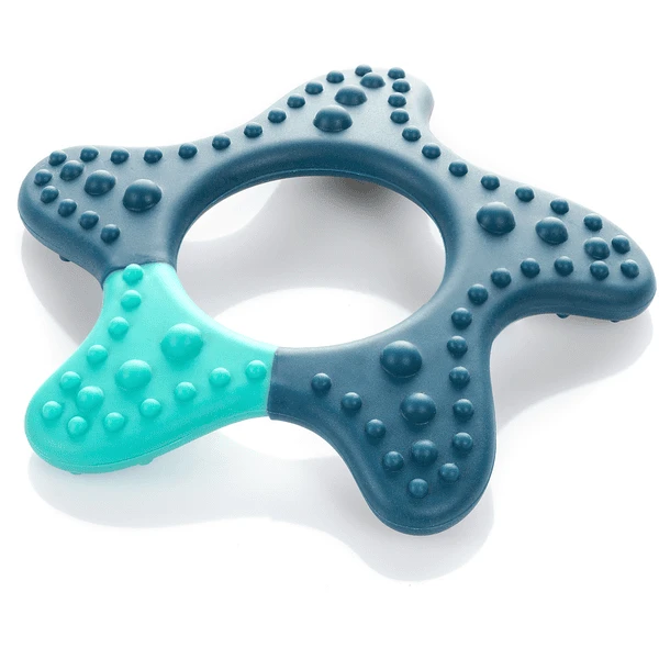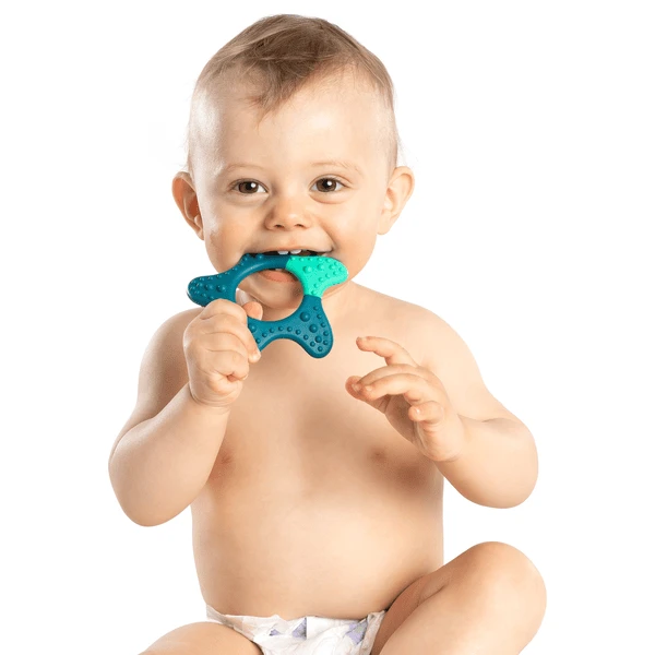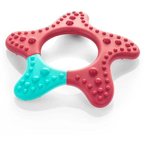 Pijnlijk tandvlees kan zachtjes worden gemasseerd door zachtjes te kauwen. In plaats van op je eigen vingertjes te kauwen, kun je je kind het ideale hulpmiddel voor pijnbestrijding bieden met een masserende bijtring. Met zijn verschillende structuren zorgt hij voor een verzachtend massage-effect en een gevarieerd bijtgevoel.