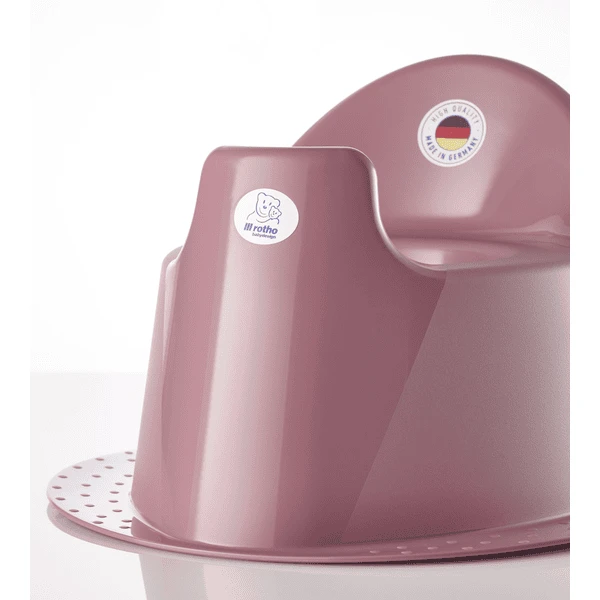 Het potje kan overal flexibel worden gepositioneerd en meegenomen, zodat het altijd snel bij de hand is als het nodig is. Dankzij de verzonken greep aan de achterzijde kan hij gemakkelijk worden getransporteerd en geleegd. De stabiele voet zorgt voor een stevige houvast, de optimale zithoogte, het optillen tussen de benen en de hoge rugleuning voor een hoog zitcomfort en bescherming tegen spatten. Dankzij de matte oppervlaktestructuur plakt de tere kinderhuid niet – voor een ontspannen en comfortabele zindelijkheidstraining.