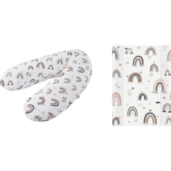 - Set van multifunctioneel verzorgingskussen (190 x 35 cm) en wig verschoonkussen (70 x 50 cm).