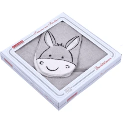 Geweldige set bestaande uit een badhanddoek met kap en een washandje van knuffelzachte badstof. Op beide artikelen staat een ezelsborduurwerk. De set is perfect als cadeau.